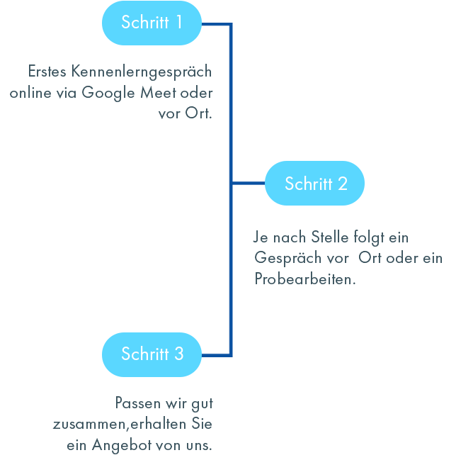 Nach Eingang der Bewerbung melden wir uns zeitnah bei Ihnen für ein erstes Kennenlerngespräch zwischen Ihnen, dem Verantwortlichen des Fachbereiches und HR. Unser Anspruch ist es, den Prozess von Bewerbung bis zur Einstellung in wenigen Wochen abzuschließen.